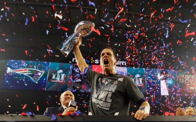 Tom Brady led one of the greatest comebacks in sports history, lifting New England from a 25-point hole to the Patriots’ fifth NFL championship in the first Super Bowl overtime.